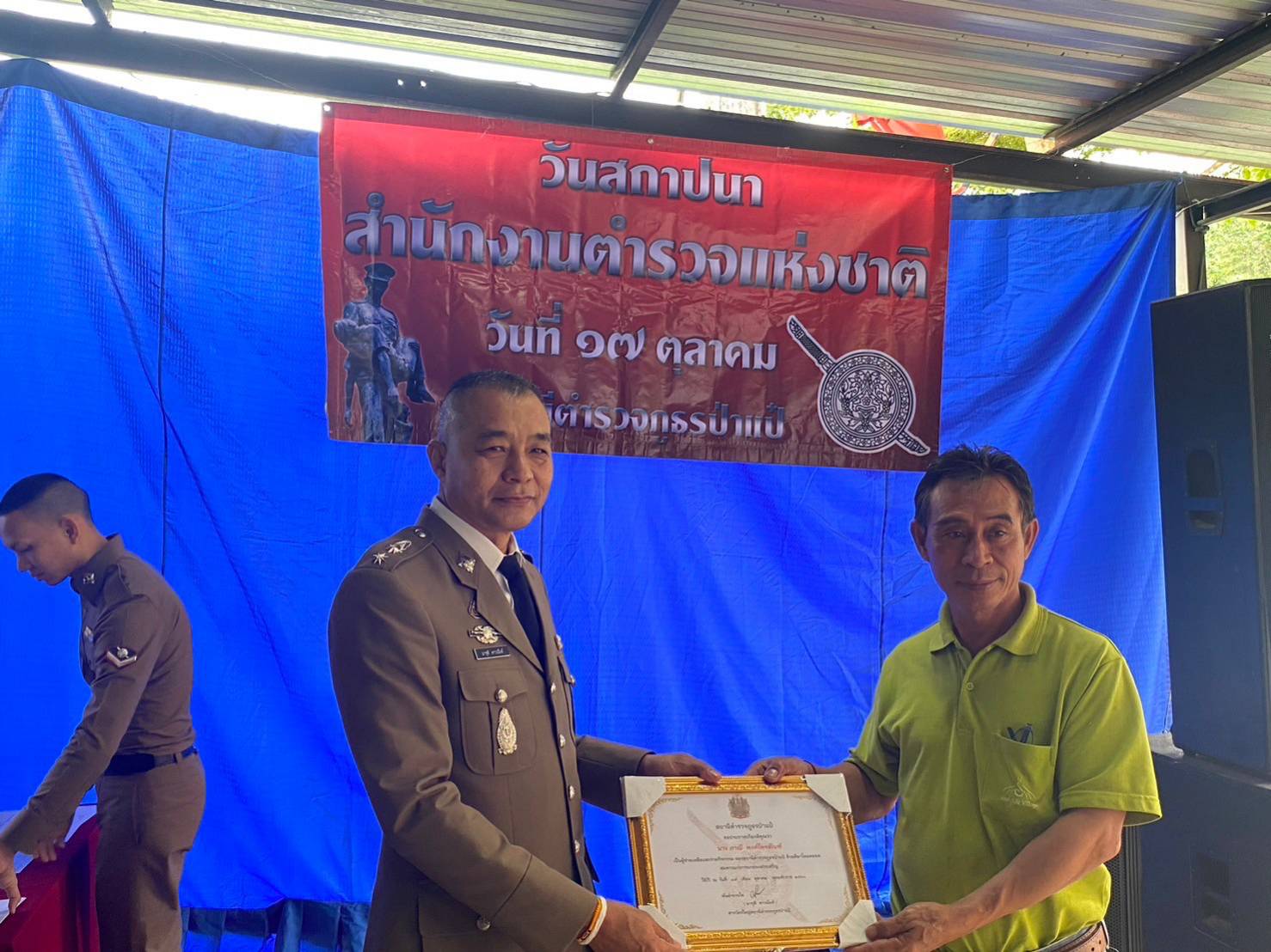 18 ตุลาคม 2567 เวลา 09.00 น เจ้าหน้าที่ตำรวจสถานีตำรวจภูธรป่าแป๋ได้จัดกิจกรรมเนื่องในวันตำรวจแห่งชาติโดยมุ่งเน้นในการมีส่วนร่วมต่อหน่วยงานต่างๆและผู้นำภายในชุมชน ซึ่งในการจัดกิจกรรมครั้งนี้มีการเชิญเจ้าหน้าที่ฝ่ายปกครองเจ้าหน้าที่องค์การบริหารส่วนตำบลป่าแป๋คณะครูภายในโรงเรียนที่อยู่ในเขตรับผิดชอบของตำบลป่าป๊า รวมถึงชาวบ้านและบุคลากรที่มีความสำคัญในการขับเคลื่อนองค์กร โดยมีการมอบเกียรติบัตรให้แก่ข้าราชการตำรวจดีเด่นเพื่อเป็นขวัญกำลังใจในการปฏิบัติหน้าที่รวมถึงมีการมอบเกียรติบัตรแก่ผู้นำภายในชุมชน เพื่อสร้างความร่วมมือระหว่างองค์กรและเพื่อประโยชน์ของประชาชนในพื้นที่ต่อไป